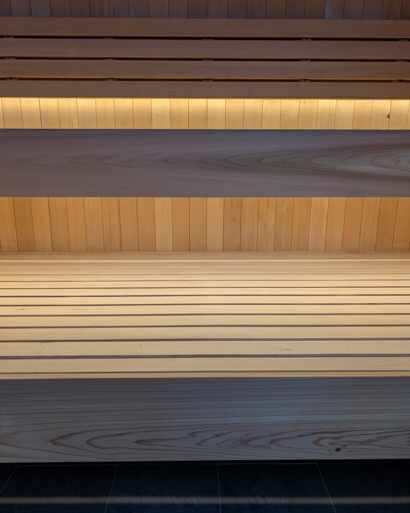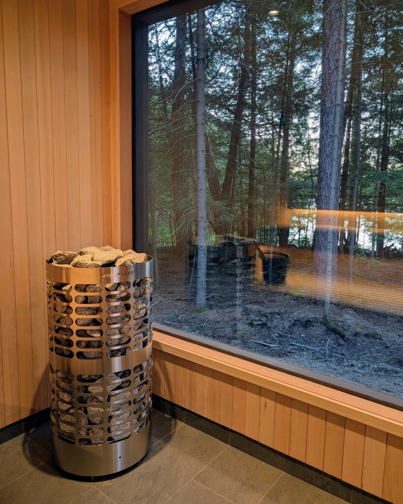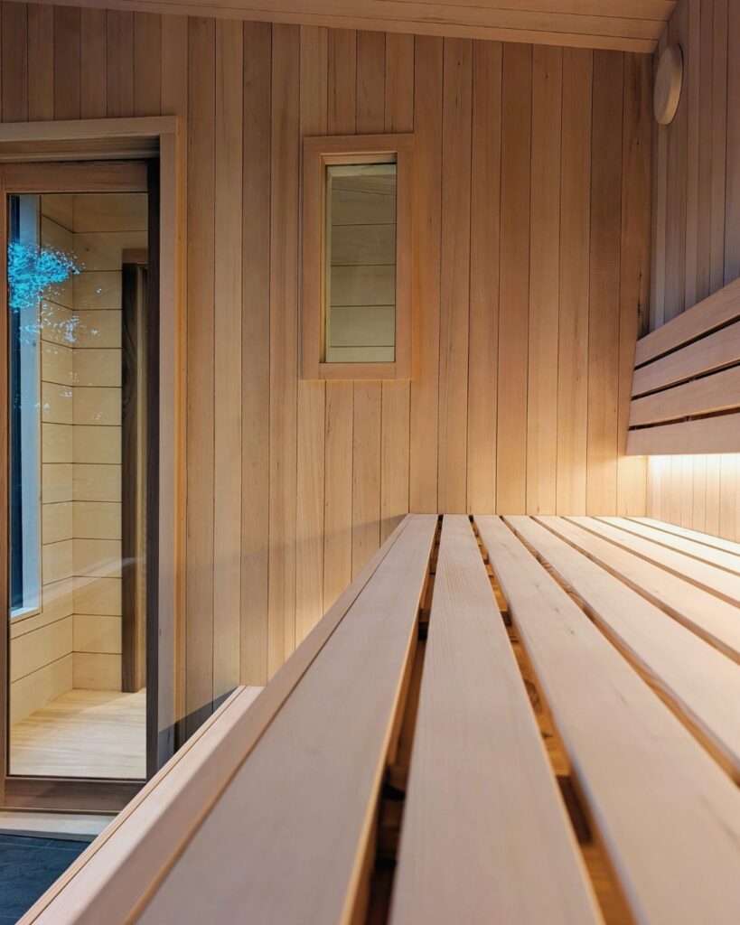 A nod to traditional Finnish sauna design, a small window between the change room and the hot room is the perfect place to enhance your session with candle light.